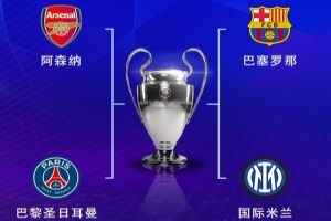 体育资讯4月17日讯 欧冠1/4决赛次回合结束,四强对阵出炉:阿森纳、巴黎、巴萨、国米。